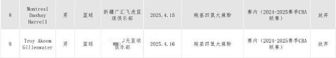 今年6月24日,中国反兴奋剂中心官方文件公示,当时的新疆男篮外援哈雷尔与广东男篮外援吉伦沃特,他们均是在4月季后赛期间,被检测出兴奋剂违规行为,两人所涉及违规物质均是羧基四氢大麻酚,且他们均选择放弃B瓶检测。