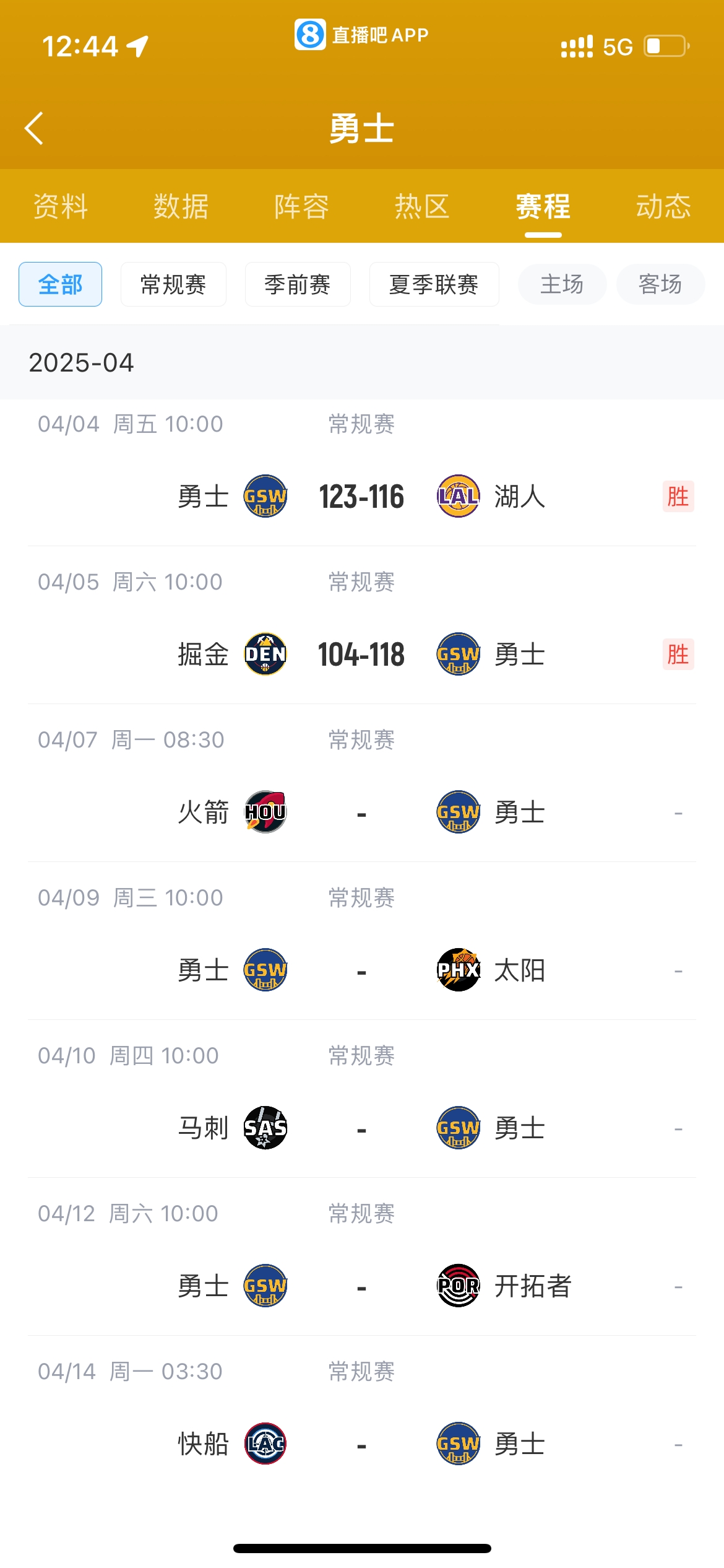 04月05日报道 勇士背靠背主场118-104力克掘金,取得5连胜。