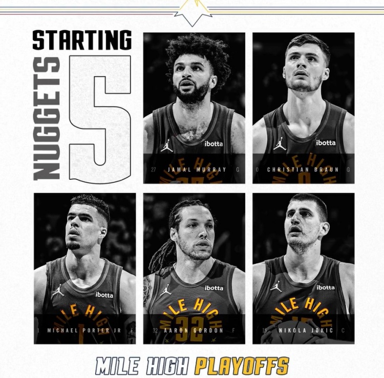 掘金首发:约基奇、贾马尔-穆雷、阿隆-戈登、小迈克尔-波特、布劳恩。