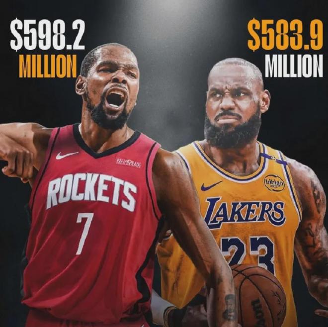 需要注意的是,杜兰特签下这份降薪的合同,也是悄悄完成了对于詹姆斯的超越。据统计,杜兰特目前的NBA生涯总薪资达到了5.982亿美元,超越了詹姆斯的5.839亿美元,成为NBA史上总薪资最高的球员。