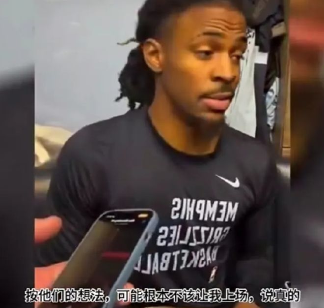 整个下半场,莫兰特多次出手不进,没有得分,这种近似躺平的表现引来了记者的提问。莫兰特表示,自己的身体没问题,具体为什么打成这样要问教练组。后面的赛后新闻发布会,莫兰特更是表示,或许灰熊队就是不想让他登场。