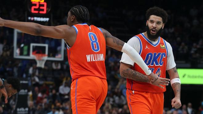 俄克拉荷马城雷霆队在人手短缺的情况下,面对孟菲斯灰熊队,始终没有放弃。他们一度落后21分,并且缺少了两名首发球员谢伊·吉尔杰斯-亚历山大和以赛亚·哈尔滕施泰因。在第四节末段,眼看就要完成逆转之际,全明星球员杰伦·威廉姆斯助攻肯里奇·威廉姆斯命中三分,帮助雷霆队取得领先,并最终以117-116的比分赢得了比赛。