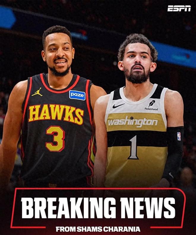 据ESPN名记Shams Charania报道,老鹰将四届全明星后卫特雷杨交易至奇才,换回后卫CJ·麦科勒姆和年轻翼锋基斯珀特。这笔交易没有涉及任何选秀权,老鹰甚至连一个首轮签都没能拿到。这笔交易的速度之快、回报之低,这出乎很多球迷和专家的预料。因为2018年那届被誉为“选秀大年”。那一年,独行侠手握5号签,而老鹰拥有探花。老鹰主动提出交易方案:用探花换独行侠5号签和一个首轮签。