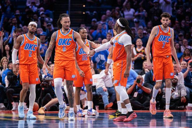虽然在不久之前,被马刺队三度击败,还在近期爆冷输给了包括黄蜂、太阳等球队,但作为卫冕冠军,这支雷霆队的战绩依旧是在联盟一骑绝尘的存在,是目前唯一一支输球场次没有上双的球队。虽然因为“造犯规”的问题,谢伊·吉尔杰斯-亚历山大遭遇到了一定的质疑,但他却顶住了压力,场均输出31.9分、4.5个篮板和6.4次助攻,向来饱受诟病的三分球,目前的命中率也已经来到了40%。