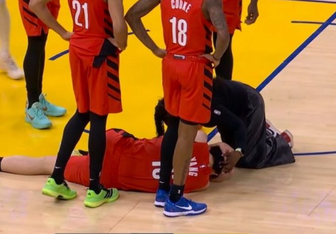 开拓者一波追到只差12分!危急时刻库里终于命中三分球,巴特勒扣篮+穆迪三分球稳住节奏。后半段杨瀚森换上场,大空位三分命中!但此后杨瀚森被库里抢断让对手打反击,节末勇士下三分雨,开拓者这边杨瀚森大空位,没人给他传球,卡马拉继续失误!三节打完,勇士95-71领先。第四节已经没悬念,就看杨瀚森还能不能上场。中段杨瀚森传球的时候,被理查德用膝盖顶到脑袋,队医也赶紧进场处理,随后直接返回更衣室。不过没过多久杨瀚森就回来,但没有太多表现。最终勇士119-97击败开拓者。