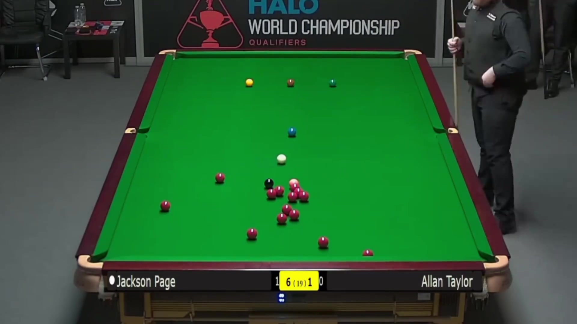 04月14日讯 斯诺克世锦赛资格赛第3轮(80进48),23岁的杰克逊-佩奇成为斯诺克历史首位单场2度打出满分147的选手!他也成为首位获得14.7万英镑奖金的选手(三大赛2杆147即可获得)。