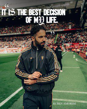 曼联官方晒图并写到:“一年前,鲁本·阿莫林成为我们的主教练!”